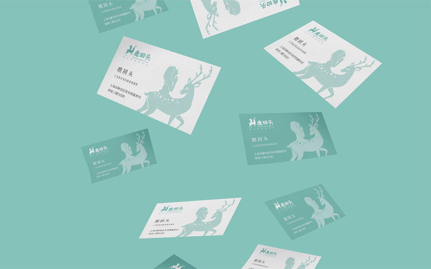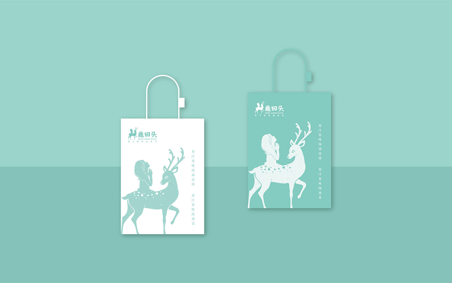 LOGO以这个传说为蓝本,设计出一个回头深情看着女孩的鹿和一个美丽的女孩向天祈祷渴望爱情,相互对应,意境优美;字体则是以楷体为基础设计,配合图形,形成整体!